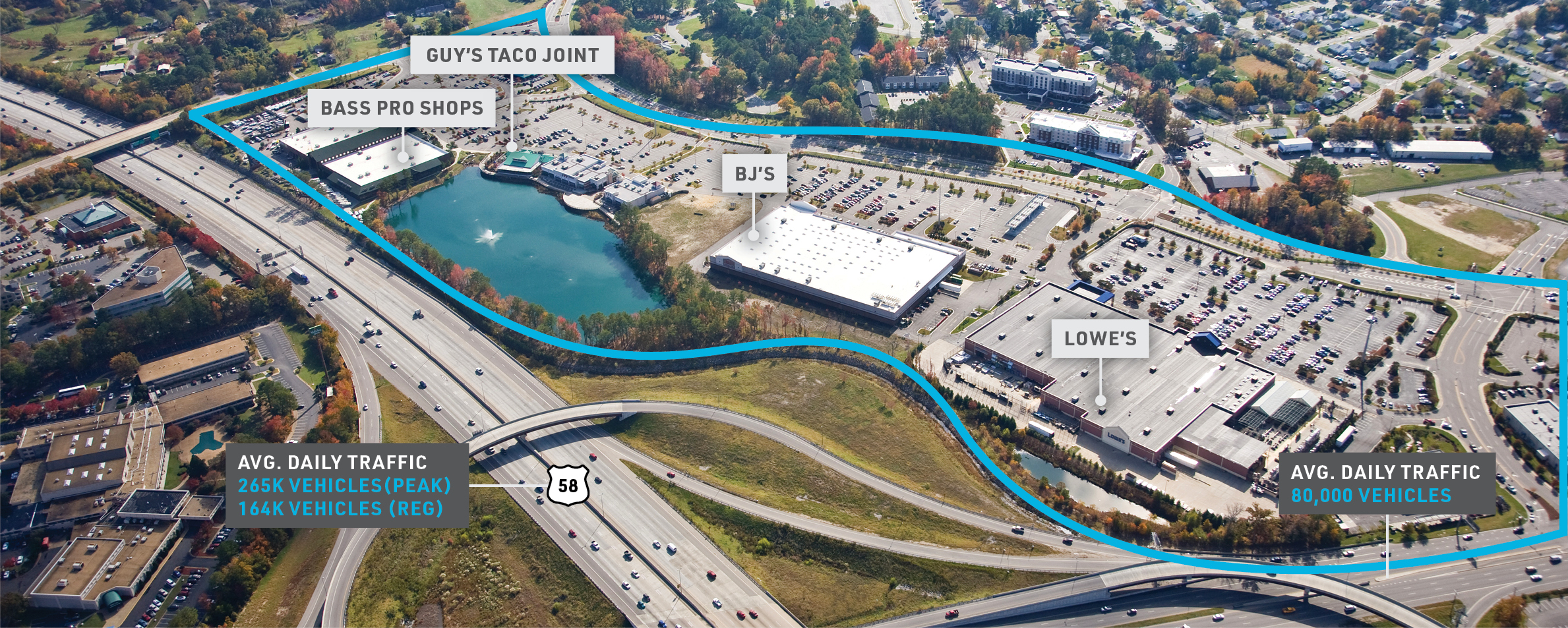 The Cordish Companies' development of the Power Plant at Hampton Roads has served as a critical anchor for the growth of Hampton Roads, Virginia as a shopping and entertainment destination. This 480,000 square foot retail, dining and entertainment district is located in the heart of Hampton, with convenient interstate access. Anchored by strong national anchors that include Bass Pro Shops Outdoor World, Lowe's and BJ's, the project has established itself as a major regional draw.